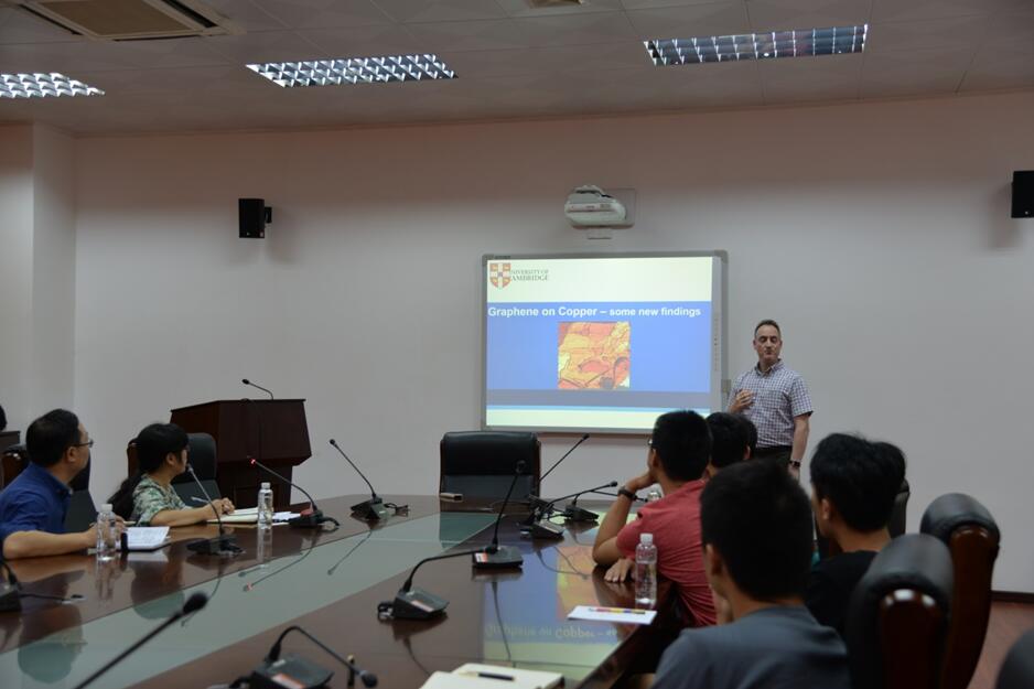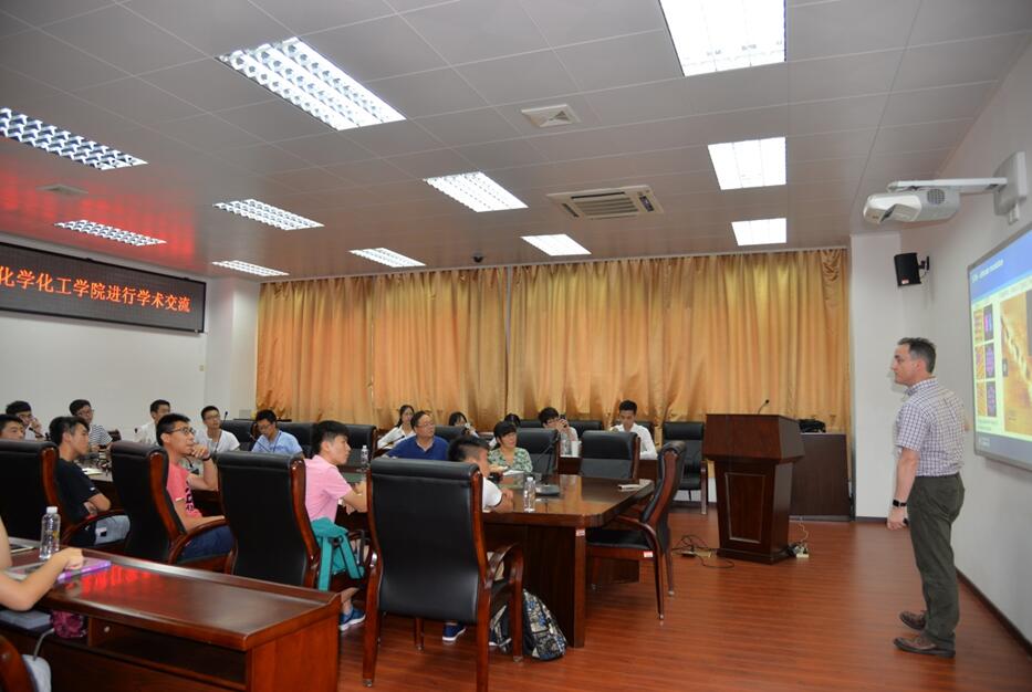 Colm Durkan教授是剑桥大学Girton学院院士,曾经担任过剑桥大学纳米技术中心的主任,是国际有名的纳米技术科学家。本次讲学是应学校国际交流处之邀专程而来。Colm Durkan为师生介绍了近场光学显微镜、扫描探针技术和原子力学显微镜在纳米科学中的应用,针对石墨烯在金属铜表面的重组、含油表面处碳酸盐的沉积以及固体-流体界面上物质沉积机理的原子尺度分析等问题进行了深入的讲解。与会师生和Colm Durkan 教授就纳米科学表征和分析领域的热点问题开展了热烈的讨论。在本科生和研究生教育、学术合作交流方面,浪live