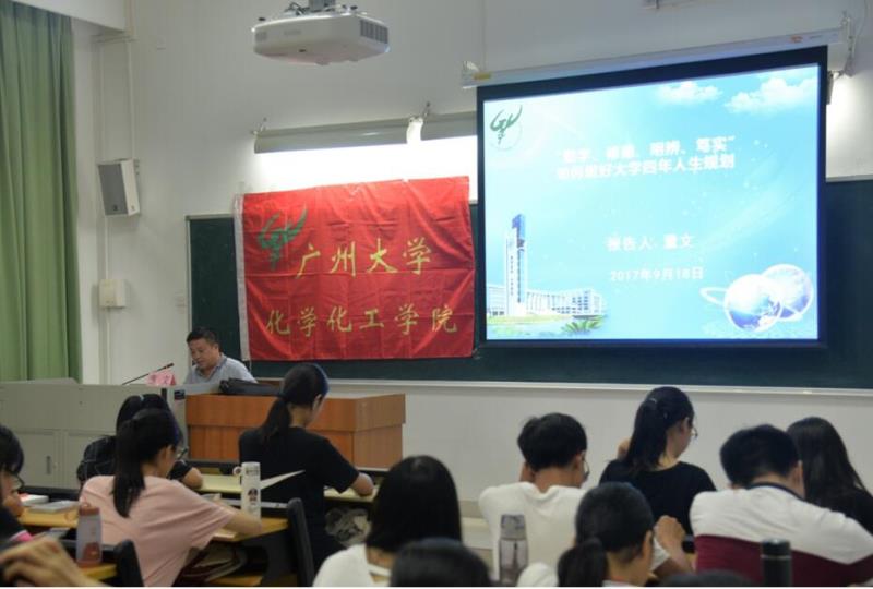 董院长的课以“勤学、修德、明辨、笃实”为主题,结合我院学科建设优势,回答了要建设什么样的高水平大学、培养什么样大学生的问题。在此基础上,他要求同学们做好大学阶段的人生规划,鼓励同学们在完成课堂学习任务的同时,积极参加挑战杯、大学生科技创新大赛、化学技能大赛等学术科技竞赛,不仅要学会在比赛中收获知识,更重要的是学会“何为团队、如何成功”的道理。董院长告诫同学们,在大学生活中要学会明辨是非,勤学笃实,学会取舍,发扬以“爱国、进步、民主、科学”为核心内容的五四精神,自觉培养和践行社会主义核心价值观,做一名与高水平大学相符合的合格大学生。