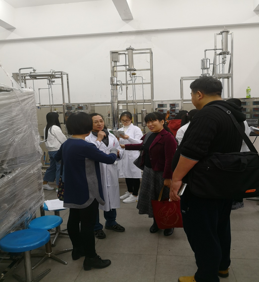 蔡院长介绍了我校高水平大学的建设情况,并针对我院科研团队的引进、管理及考核进行了交流。邹院长详细说明了示范中心在易耗品采购、危险品管理和规范化建设方面开展的工作。会后来访者参观了示范中心无机化学、物理化学、分析化学、化工原理及虚拟仿真实验室,双方就实验室安全规范管理、实验项目的开设以及仿真软件的配备等问题进行了探讨。
