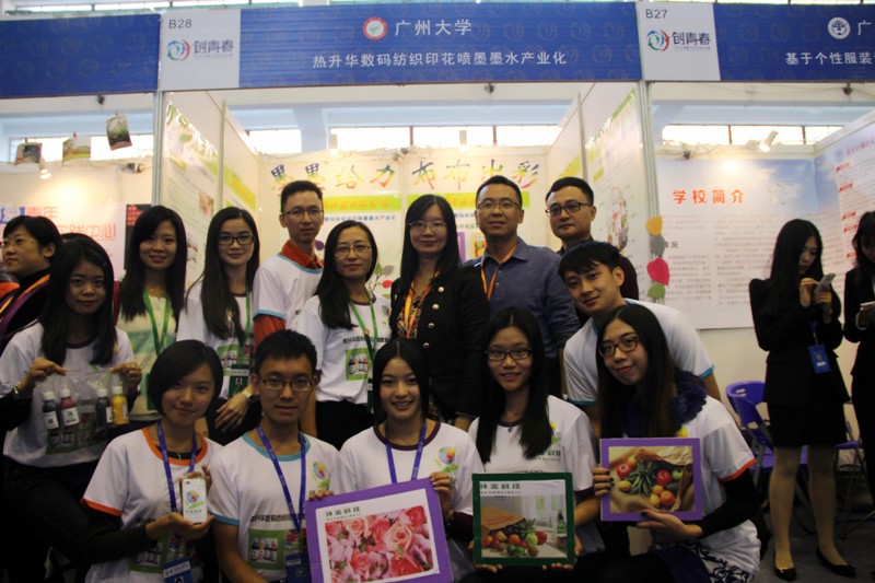 2014年11月1日由共青团中央、教育部等6部委主办的2014年“创青春”全国大学生创业大赛决赛在武汉华中科技大学开幕。来自全国209所高校的385个创业项目从参加省赛的2万个项目中脱颖而出,进入终审决赛。尚小琴教授等教师指导的项目“热升华数码纺织印花喷墨墨水产业化”作为浪live