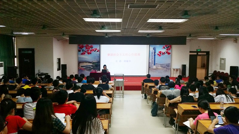 分年级同时开展“践行社会主义核心价值观宣讲活动”。分别由何蕴华书记,谭启亮副书记和宋著立老师主讲,他们用生动的语言向同学们讲述对社会主义核心价值观的独到见解。学院全体学生1000多人参加此次活动,分别在图书馆讲学厅、文新413室和理南522室举行,