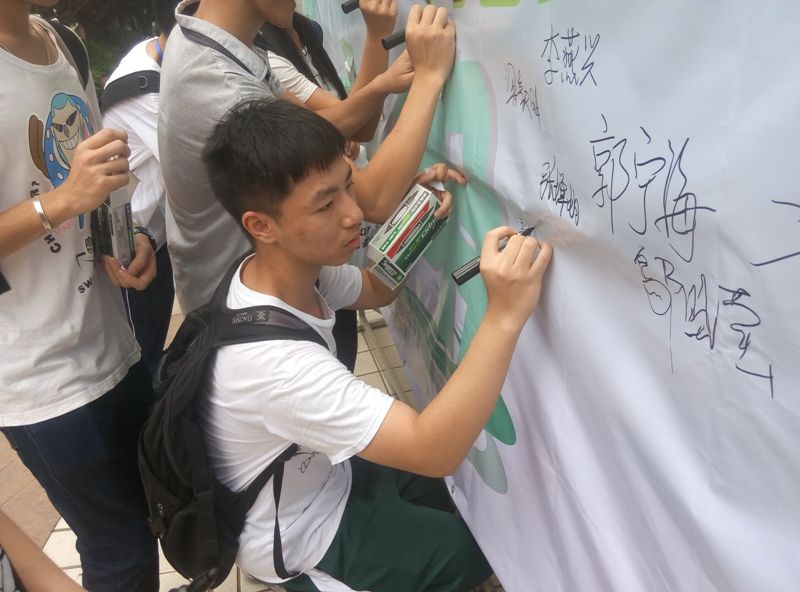 学院党委副书记谭启亮为开幕式致辞,勉励同学们奋发向上,积极参与学校“创新强校”工程,为高水平大学建设做贡献。文明志愿者代表林英铮同学做了简短的发言,代表全院学生表示要主动参与文明活动,创建良好学风、院风。接着,由学院的领导、教师率先在学校“四大文明”墙上签名,文明志愿者也纷纷把自己的决心便利贴贴到“文明墙”上。