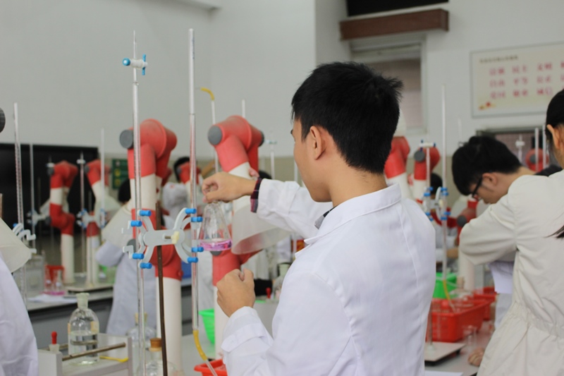 本次大赛面向修过(必修或选修均可)化学实验课程的全校学生,分专业组和非专业组,化学、化学工程为专业组,其它专业的为非专业组。同时,比赛分笔试、实验操作两个部分。笔试部分着重考察选手对化学实验室安全知识、实验基础理论知识和实验规范的了解和掌握程度,最终专业组30人,非专业组30人脱颖而出进入决赛实操环节。实验操作部分则全面考察选手在实验基本操作、实验安排和设计、实验现象的观察和记录、仪器的使用和数据的采集、分析以及解决问题的能力等多方面的实验室工作和研究能力。实验操作环节在生化楼实验室进行,内容包括铵盐中氮含量的测定(甲醛法)及硫酸铜的重结晶。
