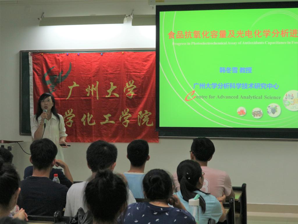 韩冬雪教授是学院新引进的国家优青人才,她的讲座通过介绍抗氧化和光电化学的理论知识,从如何有效减缓衰老,怎样判断、选择健康且性价比高的商品等方面给同学们提出建议。韩冬雪教授还跟同学们分享了其科研团队所取得的成果,阐述了科学研究的目的和意义,帮助同学们尽快找到感兴趣的科研方向。