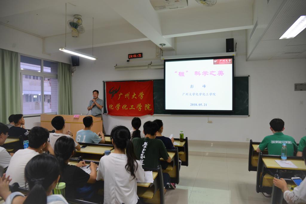 化工系新引进的学科带头人彭峰教授给大家带来的是《“碳”科学之美》。他向同学们介绍了近年来世界科技界对碳的研究发展情况,从C60到碳纳米管再到石墨烯,每一段“碳”历史的讲解,都在诠释着“碳”结构中的美。彭教授的讲座围绕着“科学美”这一主题,介绍了科研中存在的“美景”,让科学研究也变得富有艺术性和趣味性。