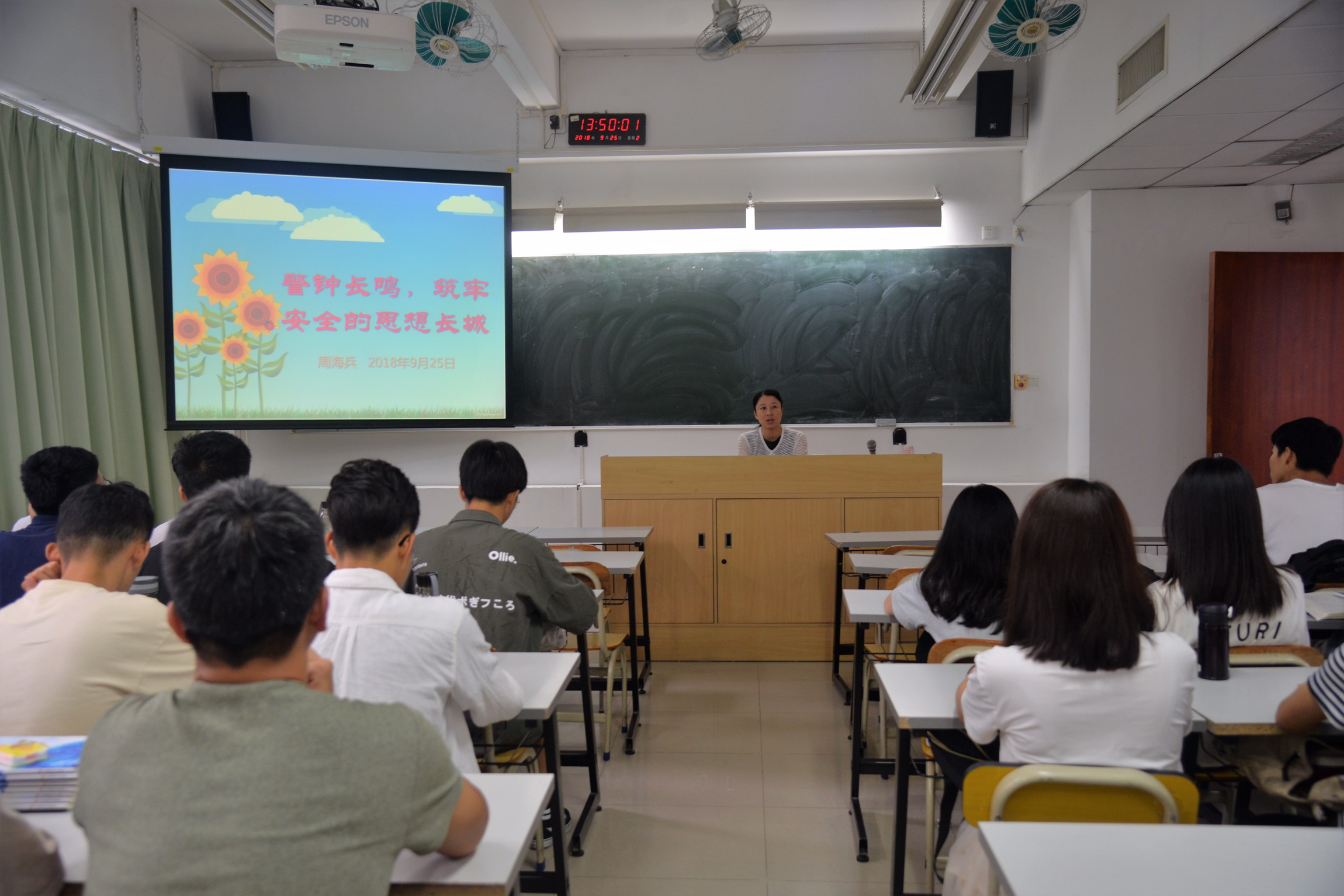 为增强同学们的国家安全防范意识,敲响安全思想警钟。9月25日下午,我院党委书记周海兵在文新214为化工172班上主题为“警钟长鸣,筑牢安全的思想长城”的思想政治第一课。