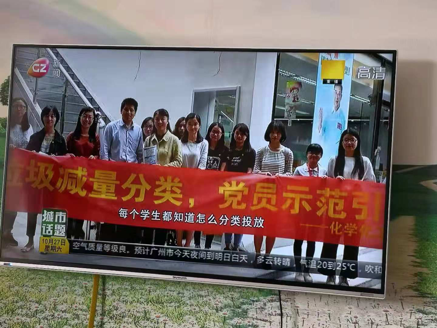 10月27日晚,广州电视台新闻频道城市话题栏目对我院“垃圾减量分类,党员示范引领”活动进行了报道。此次活动是我院B19五室一站“舍区党建服务育人,特色文化美丽先行”主题活动的重要举措。
