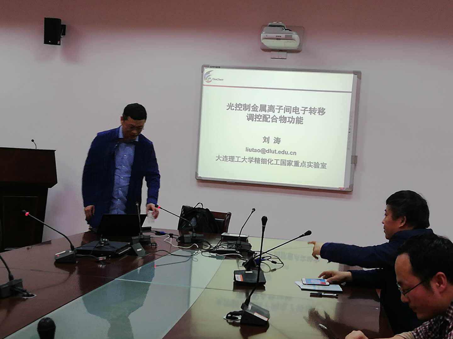 2019年03月14日,应我院董文教授邀请,大连理工大学精细化工国家重点实验室刘涛教授为我院师生作了一场题为“光控制金属离子间电子转移调控配合物功能”的学术报告。他首先介绍了光开关功能材料的研究现状及其应用,然后深入介绍了自己课题组近几年在光诱导自旋转变调控配合物功能等方面所做的工作。通过空间结构设计,发展了光可逆控制电子转移与排布的策略,利用光致电子转移实现了磁体行为、介电、热膨胀和荧光的调控。并阐述了该领域未来的研究方向。