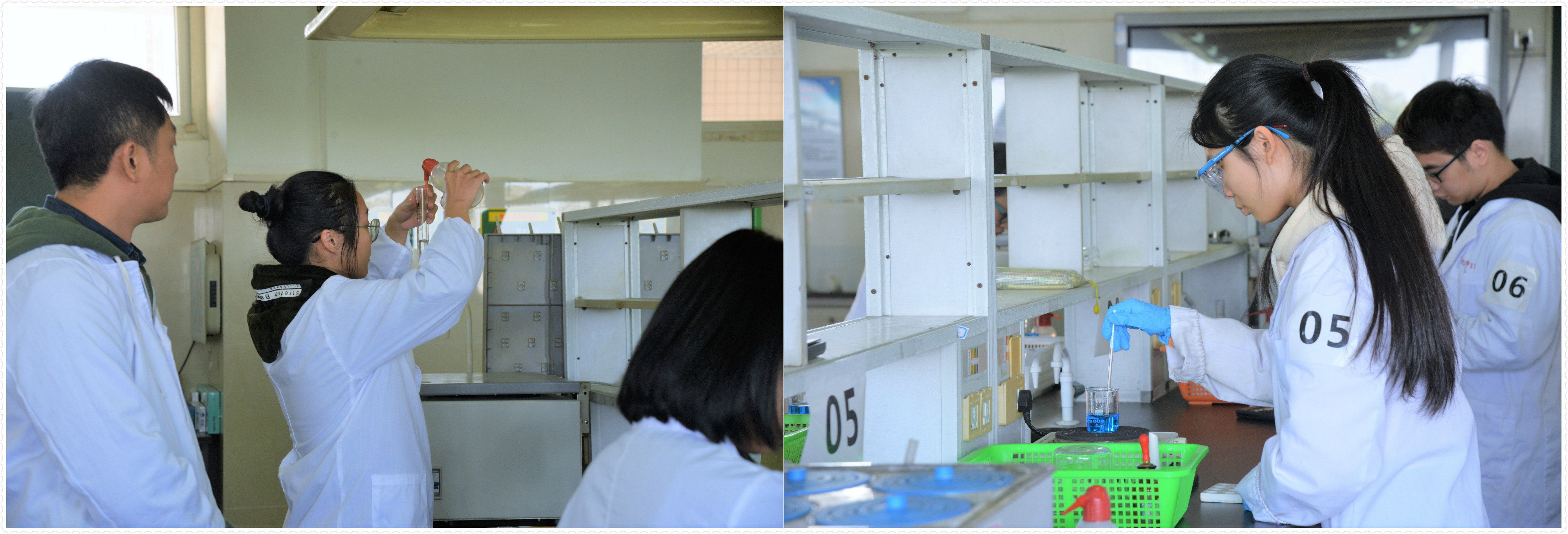 参赛者们穿上整洁的实验服,在考场门口依次签到,在工作人员的引导下有序进入实验室,在老师开考指令发出后参赛者们就开始井然有序地做实验。