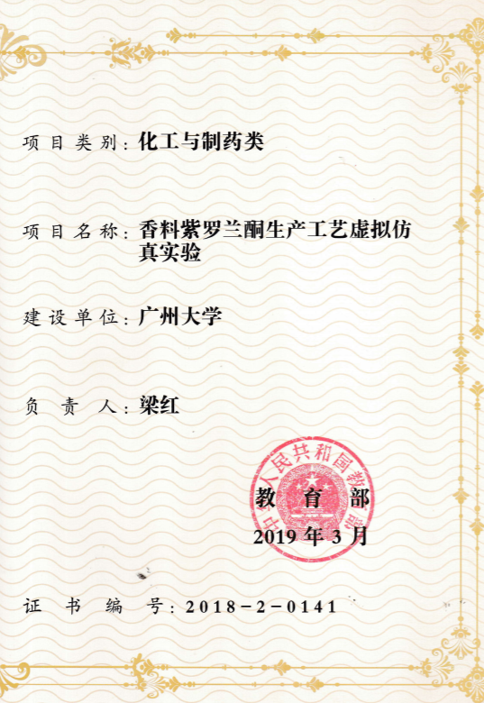 近日,教育部发布了《关于公布首批国家级一流本科课程认定结果的通知》(教高函〔2020〕8号),我院梁红教授负责的《香料紫罗兰酮生产工艺虚拟仿真实验》入选虚拟仿真实验教学一流课程,标志着我院一流课程建设迈出了坚实的一大步。
