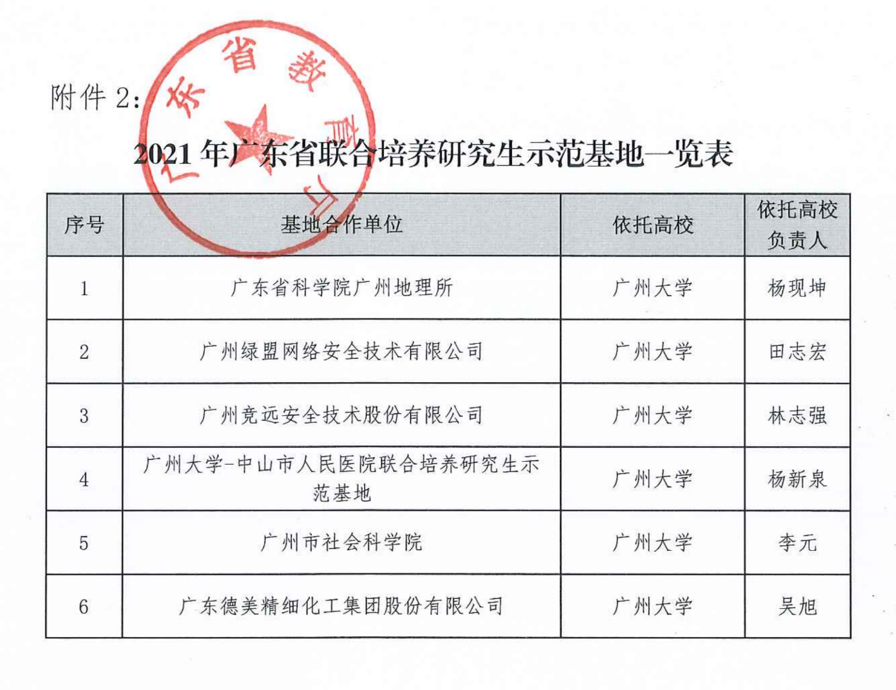 -广东德美精细化工集团股份有限公司”广东省联合培养研究生示范基地。到目前为止,我院省级研究生培养基地增加到了5个,校外(企业)研究生培养导师近80人。