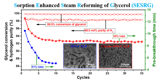 吸附强化(SESR)制氢技术通过对重整反应过程中的CO2进行原位捕获,实现一步生产高纯度的氢气,并同时对CO2进行固定。这一技术是跨入“氢经济”和实现碳排放控制的重要手段,也是目前化学、材料和化工等领域的研究热点之一。然而,这一技术的实际应用严重受限于高温条件下吸附剂和催化剂的烧结引起的失活。