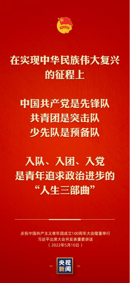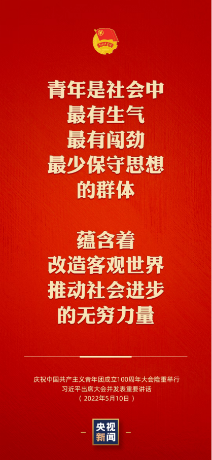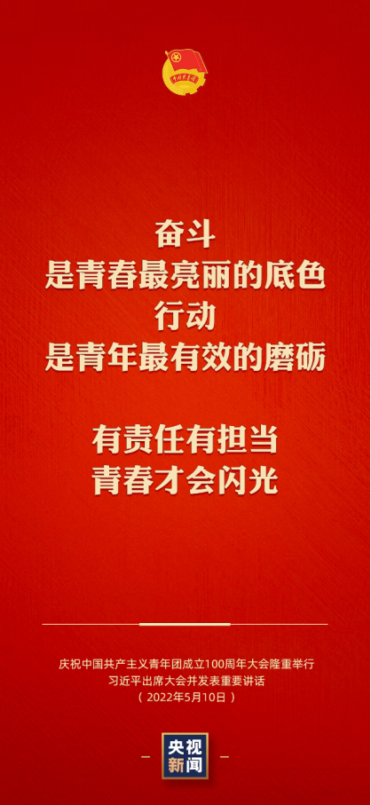 今天(10日)上午,庆祝中国共产主义青年团成立100周年大会在北京人民大会堂隆重举行。中共中央总书记、国家主席、中央军委主席习近平出席大会并发表重要讲话。