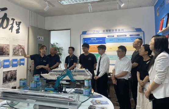 珠江涂料党委副书记兼工会主席曾伟豪热情带领我院师生参观公司展厅,详细介绍了公司的发展历程、资质荣誉及主营业务,重点展示公司在工业防腐涂料上的技术成果与应用场景。通过市场部的生动讲解,师生们对化工新材料从研发到产业化的全链条逻辑有了更全面的了解。