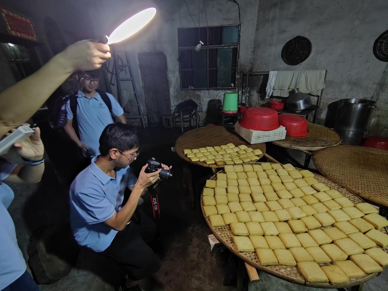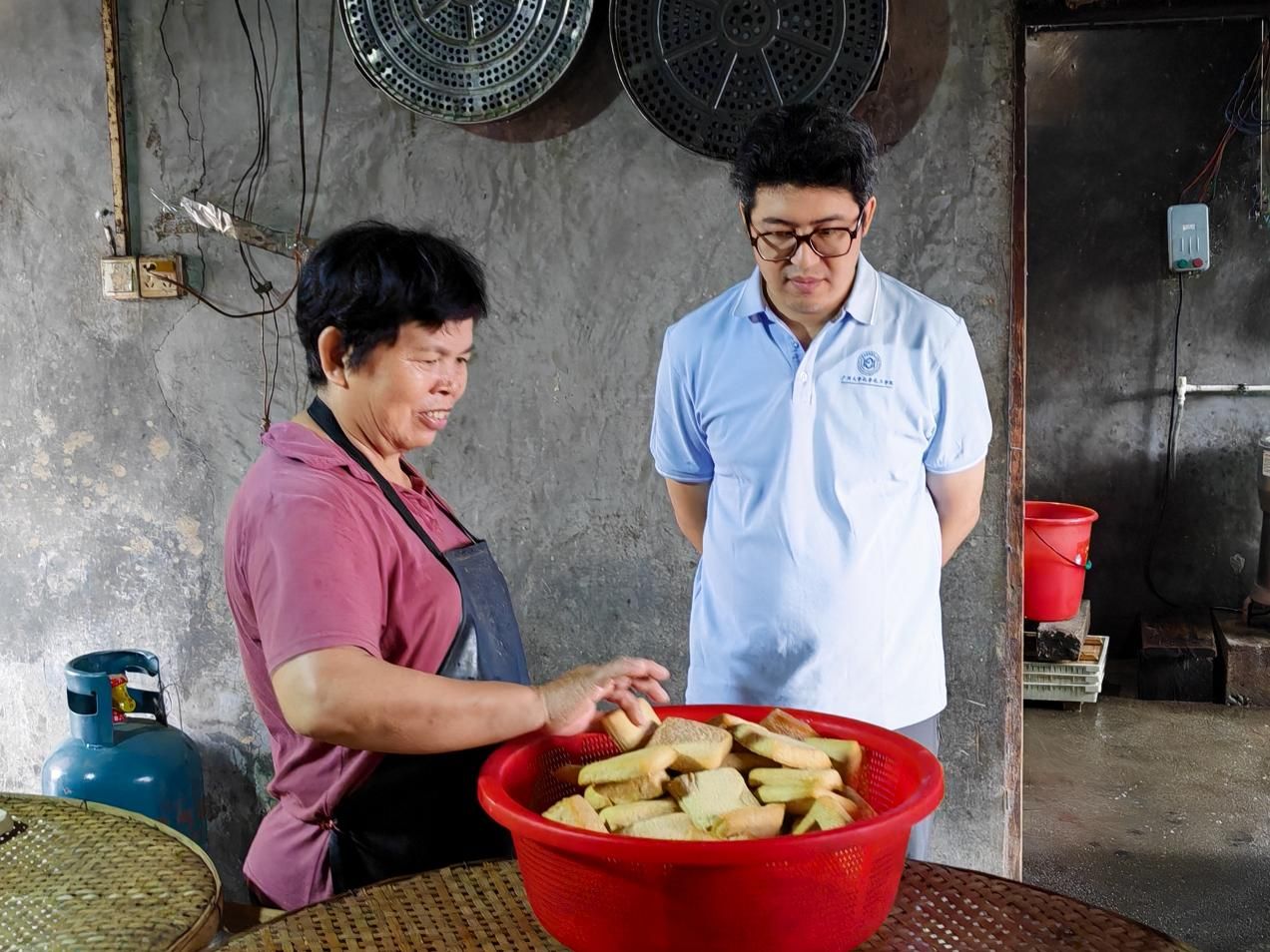 在蕉岭县广福镇,突击队聚焦豆干制作这一非遗技艺,深入生产现场了解制作流程,针对于蕉岭县广福镇豆干作坊面临产品保质期短等传统工艺中存在的防腐难题,专家组运用食品化学专业知识提出改进建议,提出防腐工艺升级与冷链包装创新,助力非遗技艺与现代技术结合,拓宽产品的市场销路。